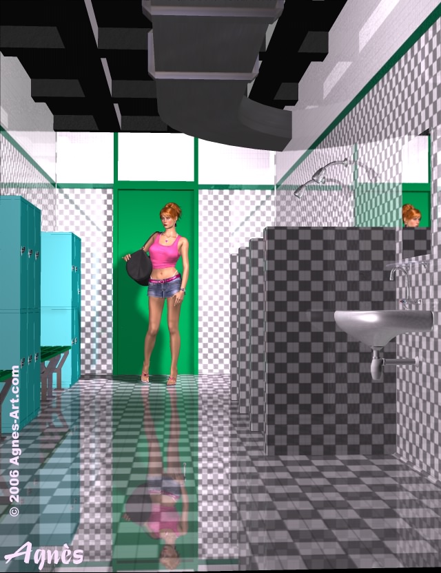 Aux vestiaires, elle se déshabille, range ses affaires dans un des casiers.